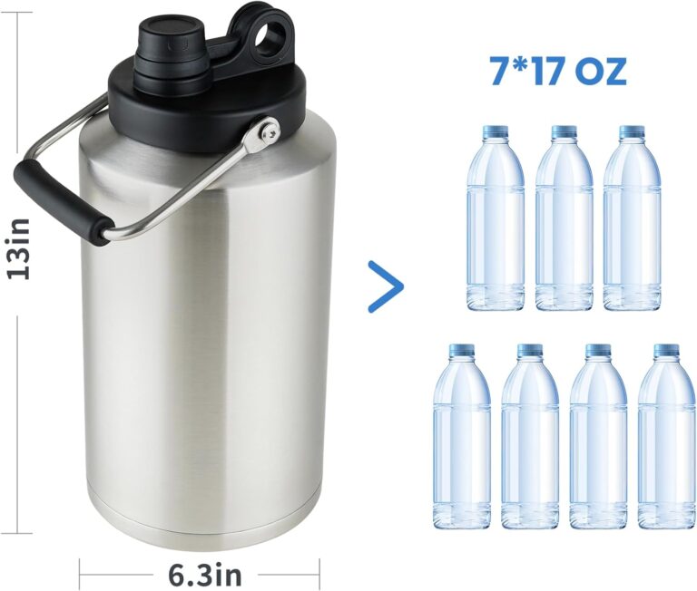 1 Gallon Water Jug Bottle Insulated, 128 oz Stainless Steel Water Bottle Wide Mouth Double Vacuum Dishwasher Safe BPA Free for Hot & Cold Drinks