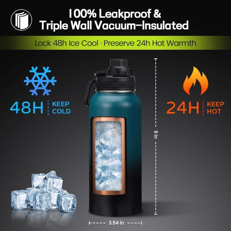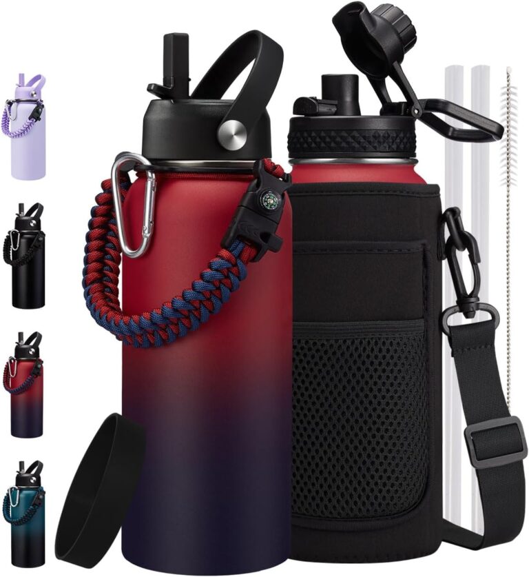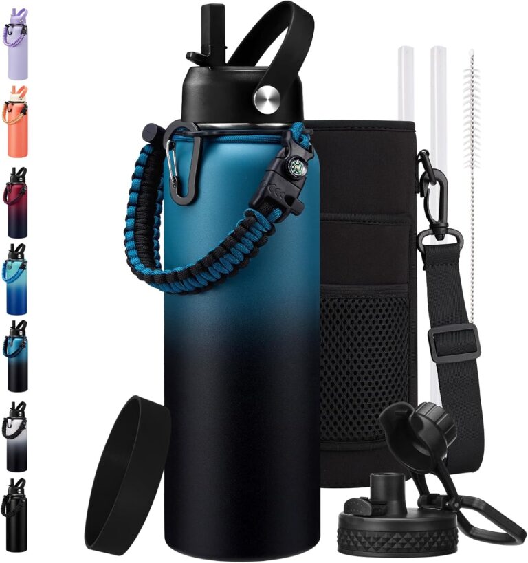 Insulated Water Bottle 40 oz – Keep Cold 48H & Hot-24H, Metal Water Bottle with Straw & Auto Spout Lid,Paracord Handle,Bottles Carrier Bag, Leak Proof Thermal Flask for Hiking Cycling Sport