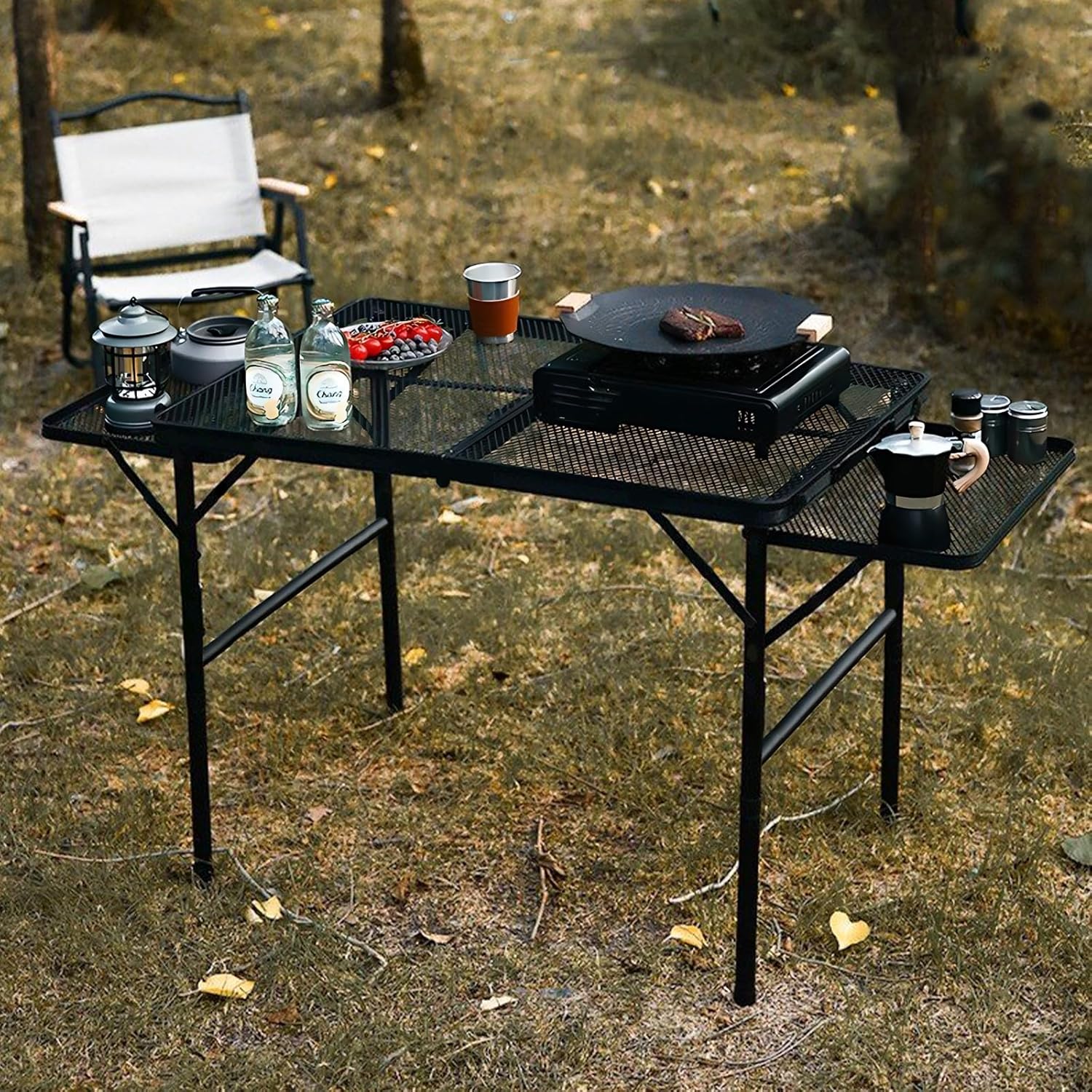 - 【Foldable Wing Panels】Our grill table comes with 2 expansion panels to increase the desktop area for home use. With removable mesh layers and side pockets, the foldable grill table can accommodate all the grilling essentials